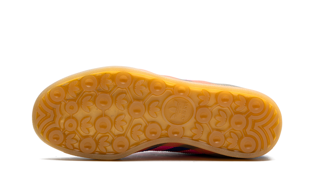 Its premium suede upper in Collegiate Green, a deep and elegant green, provides a classic and refined look. The Three Stripes and the heel in Lucid Pink, a vibrant and bold pink, add a striking contrast and a contemporary touch to the model. The translucent Indoor Gum sole, characteristic of the Gazelle Indoor line, offers durability, grip and an iconic vintage finish.