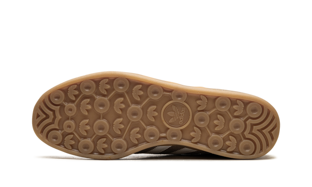 Its premium suede upper in Earth Strata, a sophisticated earthy beige, offers a discreet and refined look. The Three Stripes and white heel create a classic contrast, while the Gold Metallic details add a touch of luxury and exclusivity. The translucent Indoor Gum sole complements the design with a vintage finish, ensuring durability, grip and comfort for everyday life.