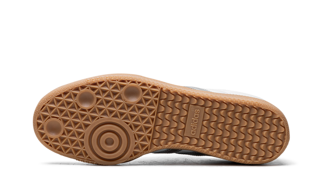Its premium white leather upper provides a clean, refined look, while the Three Stripes and Silver Metallic heel add a subtle, contemporary shine. The gray suede toecap reinforces the classic Samba texture, ensuring an extra touch of sophistication. The Gum natural rubber outsole complements the design, offering durability, grip and absolute comfort.
