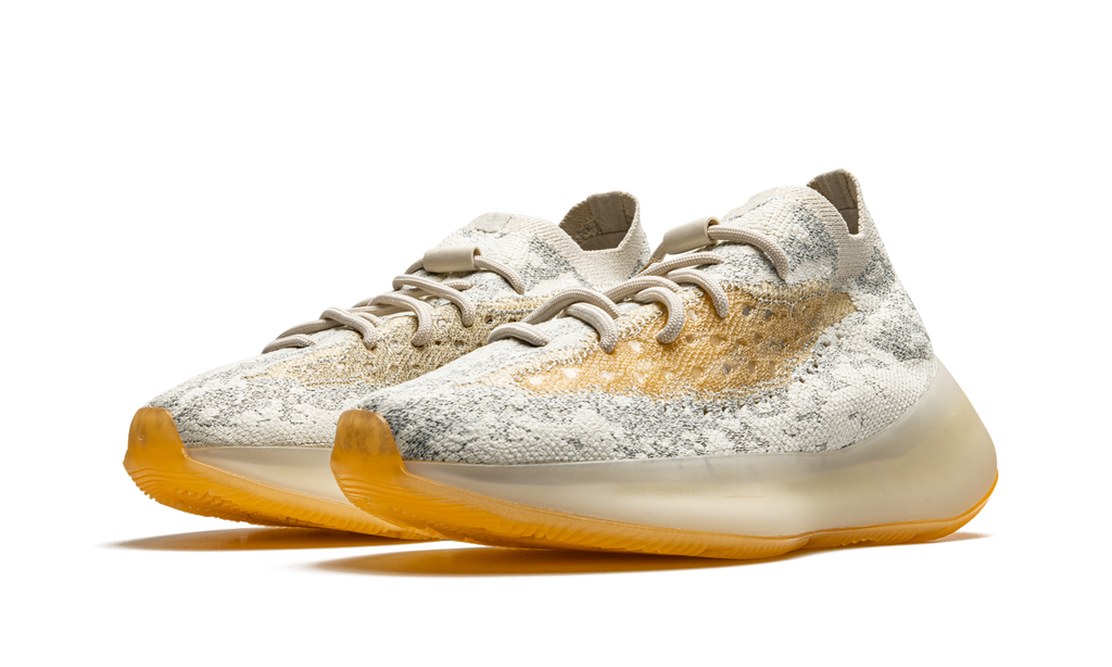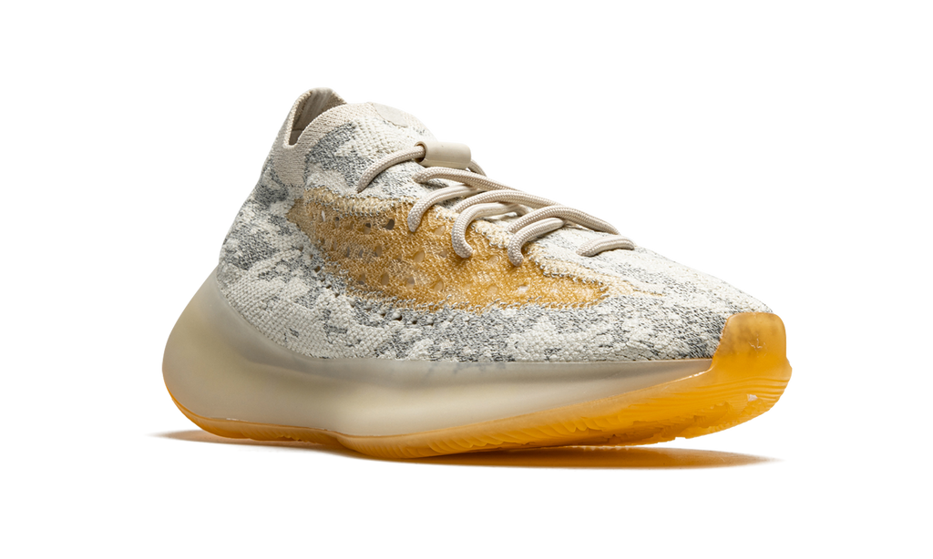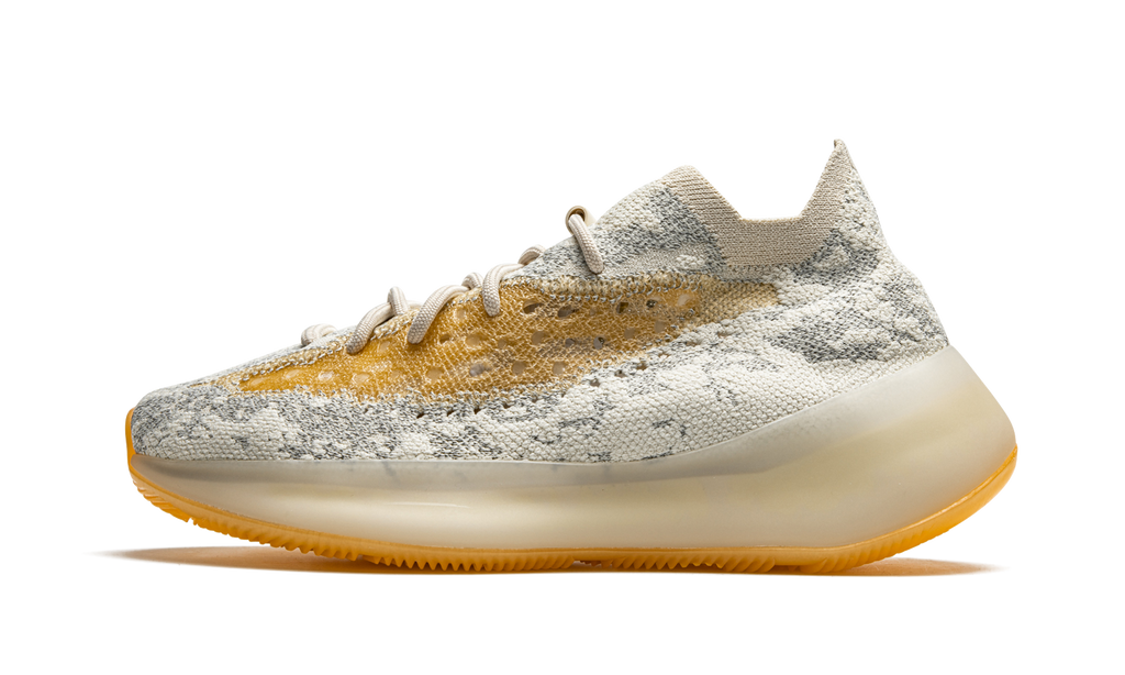 The upper of the Yeezy Boost 380 Yecoraite Reflective is made from Primeknit, a material that fits the foot in a comfortable and flexible way, offering breathability and support. The predominant colors in shades of gray and beige are contrasted with details in orange, creating a dynamic and interesting look. The most striking feature of the model, however, is the reflective finish – the upper part is treated in such a way that, when exposed to light, the sneaker shines, creating an impressive visual effect that brings an extra dimension to the design.