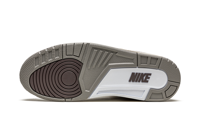 The upper of the Jordan 3 Retro A Ma Maniére is composed of high-quality premium leather in a rich shade of burgundy and gray tones that create a feeling of luxury and understated elegance. The texture of the leather is smooth and well finished, bringing a sense of sophistication to the classic design. The iconic suede elephant on the heel and toe areas is retained, but with a slight update to align with the collaboration's more refined aesthetic.