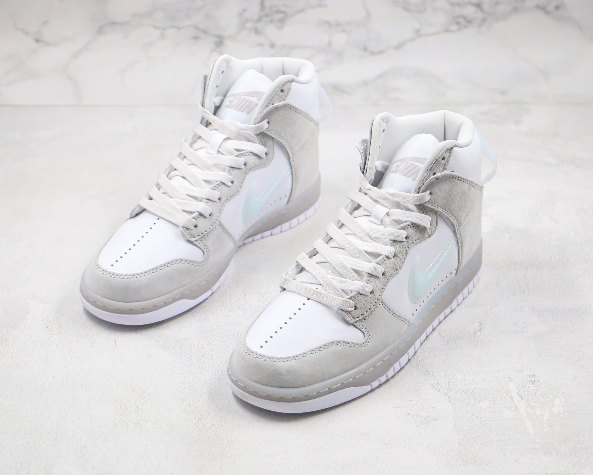 The Nike Dunk High Slam Jam White Pure Platinum is a special edition that mixes classic Dunk with a clean color palette and high-end details. Developed in partnership with the iconic streetwear store Slam Jam, this model features a timeless design with a modern, minimalist touch, perfect for those looking for style and comfort in their everyday lives.