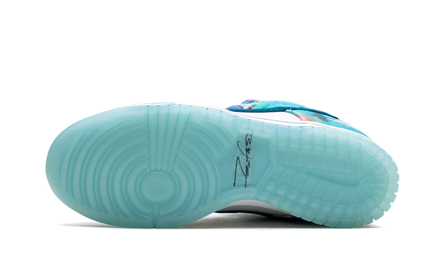 The Nike SB Dunk Low "Futura Laboratories Bleached Aqua" is a collaboration between Nike SB and renowned artist Futura, bringing a unique and bold style to the classic Dunk Low. This special version mixes artistic elements with the functionality of skate shoes.